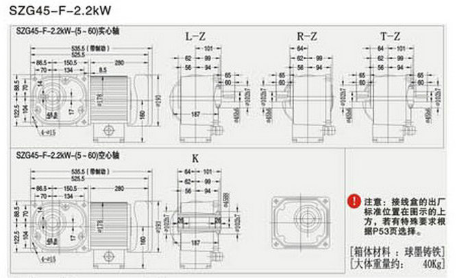 以下是SZG-F直交轴中型减速机的具体参数: