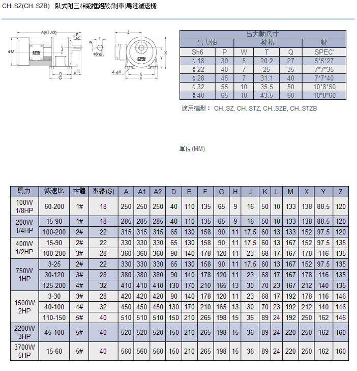 下图为台湾城邦卧式(标准/缩框)附三相刹车减速马达详细参数及选型参数: