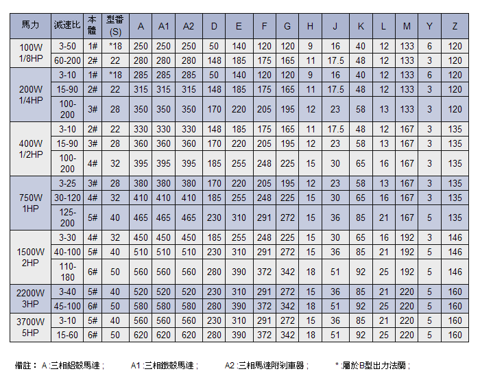 模型代号TYPES : CH, CV, CHM, CVM, CHD, CVD 马力 CAPACITY : 100W-3700W 减速比 RATIO : 3, 5, 10, … 1800